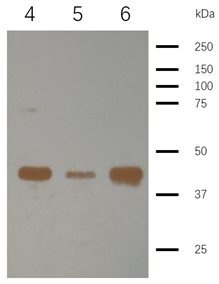 ? 免疫原:ca. 100 amino acids of recombinant actin conserved more than 80 % in Arabidopsis thaliana: actin-1 P0CJ46 AT2G37620, actin-2 Q96292 AT3G18780, actin-3 P0CJ47 AT3G53750, actin-4 P53494 AT5G59370, actin-5 Q8RYC2 At2g42100, actin-7 P53492 At5g09810, actin-8 Q96293 AT1G49240 , actin-11 P53496 , AT3G12110 ,actin-12 P53497 AT3G46520
