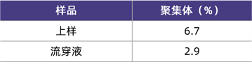 在該應(yīng)用案例中,研究人員使用CHO細胞表達IgG型單克隆抗體,料液經(jīng)過Protein A親和層析和陽離子交換層析純化后,在較低的pH和較高的電導(dǎo)率條件下孵育,誘導(dǎo)產(chǎn)生高含量的聚集體,再以流穿模式上樣HCPureTM,收集流穿液和淋洗液,檢測聚集體含量。