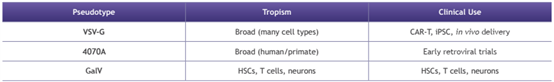 重組慢病毒可以通過(guò)不同的包膜蛋白來(lái)提高轉(zhuǎn)導(dǎo)效率和改變特異性,從而直接影響下游純化策略。