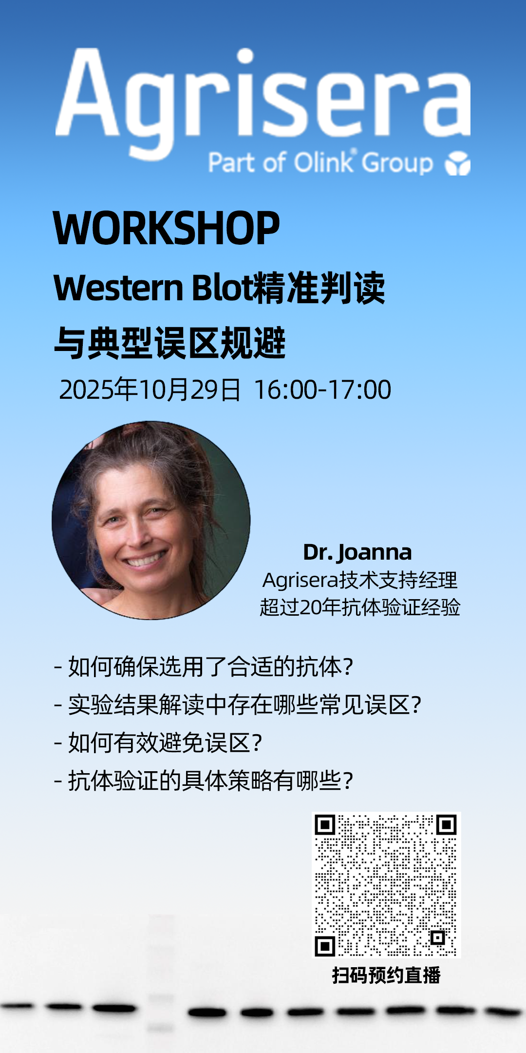 為助力科研人員攻克Western Blot實(shí)驗(yàn)中的常見難題,西美杰攜手Agrisena公司技術(shù)專家Joanna博士,共同推出【Western Blot全流程優(yōu)化】系列專題講座。10月29日(周三)下午4點(diǎn),本系列第二講——“Western Blot結(jié)果精準(zhǔn)判讀與典型誤區(qū)規(guī)避”即將在線開講。在本次課程中,Joanna博士將聚焦于Western Blot結(jié)果分析與常見誤區(qū),系統(tǒng)講解如何準(zhǔn)確判讀條帶、并針對(duì)典型錯(cuò)誤案例提供優(yōu)化方案,助您有效提升數(shù)據(jù)的可靠性與發(fā)表水準(zhǔn)。