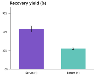 Figure 4. Lentivirus Recovery Rate in Serum-Free vs. Serum-Containing Culture Systems: Percentage of Lentivirus in Purified Samples Relative to Viral Stock Solution