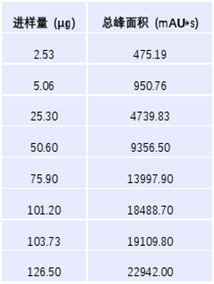 In the process of analyzing 8 injection volume gradients of the recombinant anti-human ER2 antibody factor monoclonal antibody using ZF-LC-0001, the correlation coefficient R2 reached 0.9999. The data indicates that within the maximum analytical limit of the instrument, changes in the injection volume gradient have little impact on the accuracy of the data.