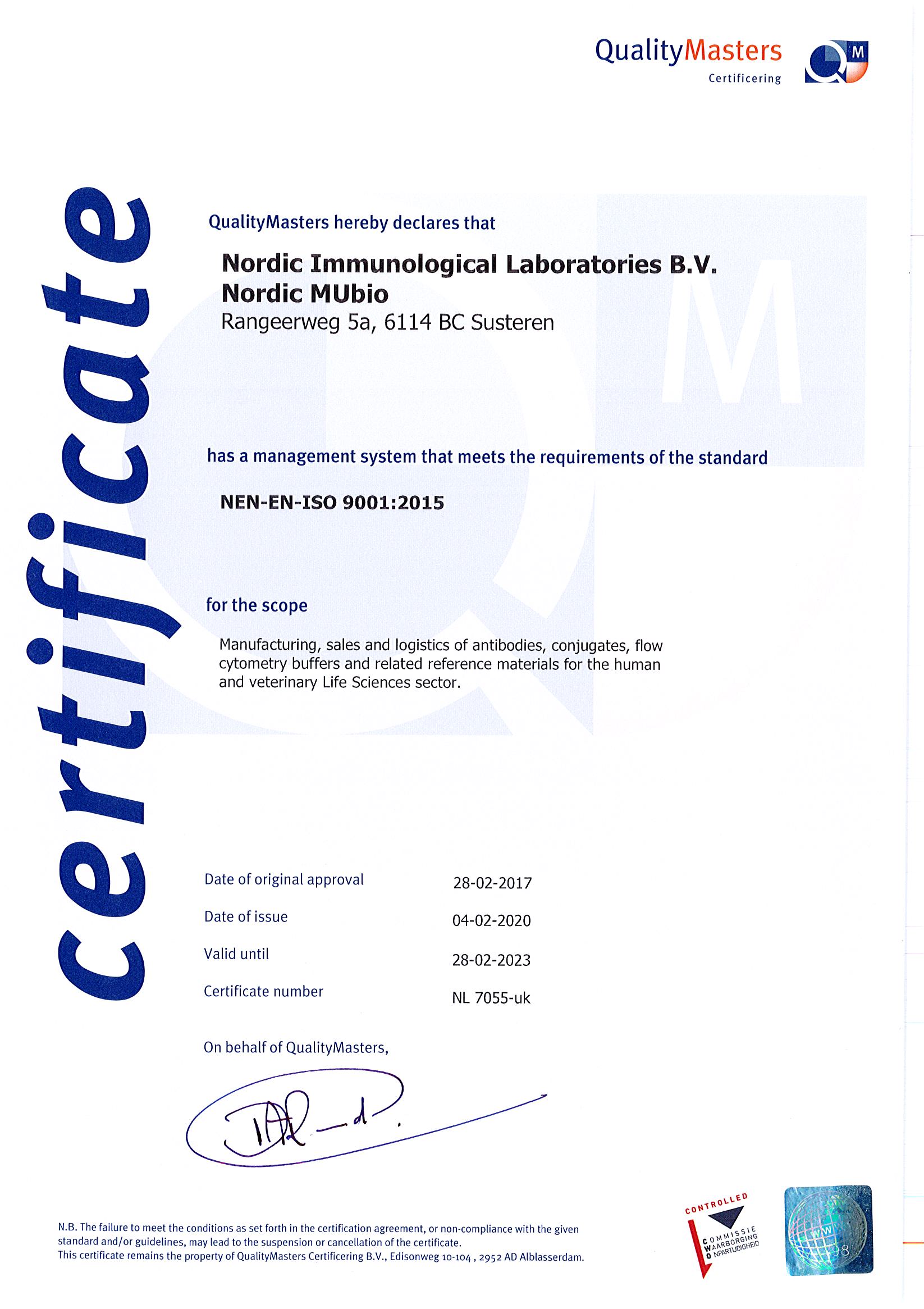 Nordic-MUbio公司供應(yīng)2000多種用于生物醫(yī)學(xué)和獸醫(yī)研究的基礎(chǔ)免疫學(xué)試劑,包括抗血清、抗體、免疫復(fù)合物、純化蛋白、對(duì)照品、血清蛋白標(biāo)準(zhǔn)品和其他校準(zhǔn)品。他們包括高度特異性的單克隆抗體,以及用于不同試驗(yàn)體系的標(biāo)記二抗。Nordic-MUbio嚴(yán)格遵守IS09001標(biāo)準(zhǔn)生產(chǎn)高質(zhì)量的抗體,80%以上的抗體經(jīng)過冷凍組織免疫組化檢測(cè),近70%的產(chǎn)品通過流式細(xì)胞術(shù)驗(yàn)證,50%的產(chǎn)品通過WB驗(yàn)證。同時(shí)Nordic-MUbio也是斑馬魚抗體開發(fā)的引領(lǐng)者,擁有50多種可用于斑馬魚熒光檢測(cè)的抗體。Nordic-MUbio的核心優(yōu)勢(shì)在于每一個(gè)單項(xiàng)產(chǎn)品都提供及時(shí)的技術(shù)支持并擁有廣泛的科學(xué)數(shù)據(jù)、圖片和文獻(xiàn)參考資料。